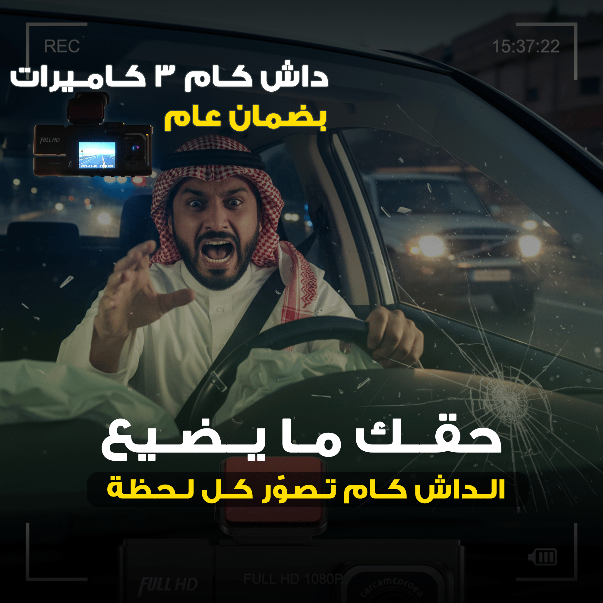 هذه الكاميرا سيارة تمتاز بكاميرا أمامية وخلفية وداخلية، توثق كل لحظة أثناء قيادتك. تشتغل بسهولة عن طريق الواي فاي مع هاتفك، وصورها بدقة 1080 بكسل تعطيك وضوح عالي. كمان فيها تسجيل ليلي بالأشعة تحت الحمراء، وتسجيل تلقائي حلقة مفرغة، يعني ما تحتاج تفضي ذاكرة باستمرار.